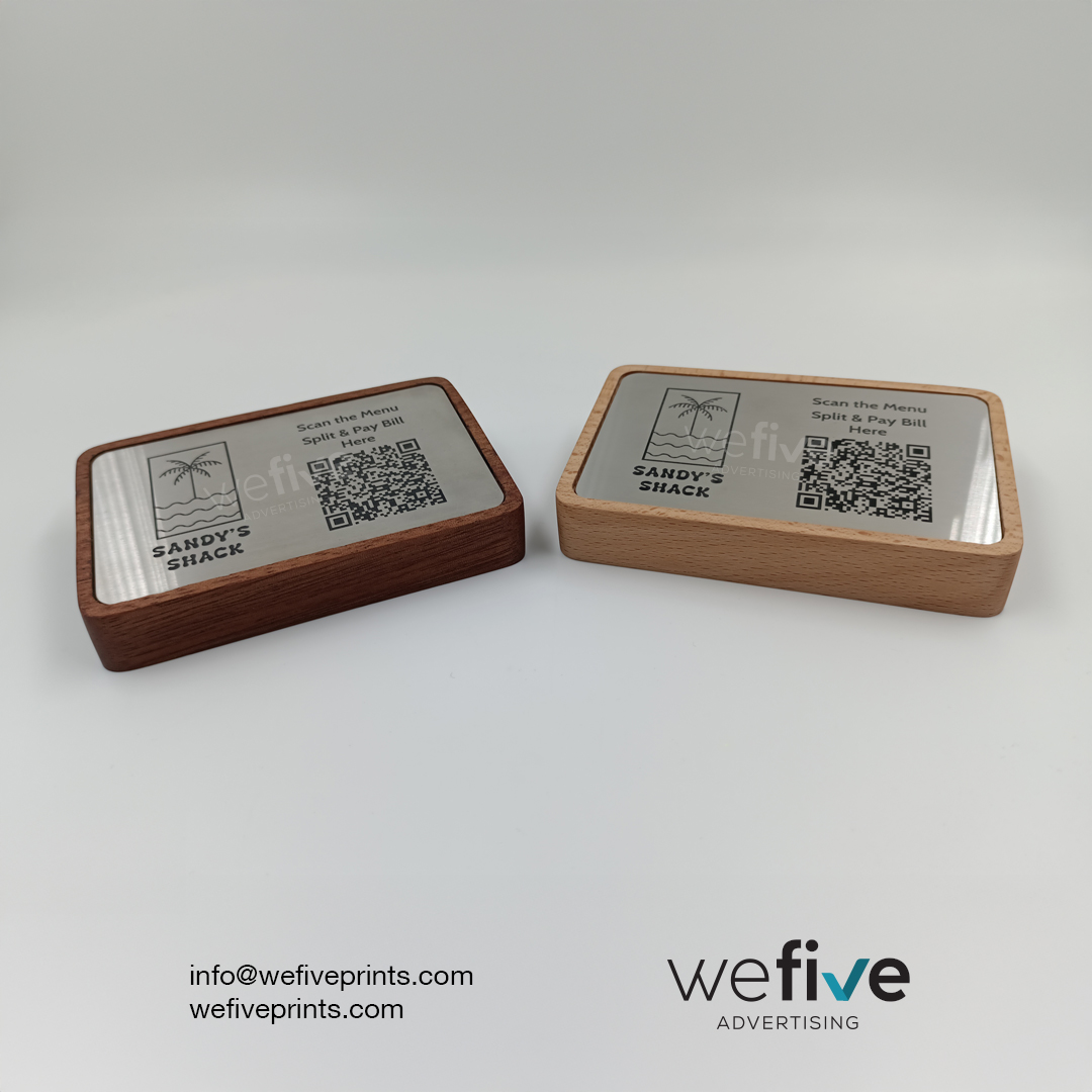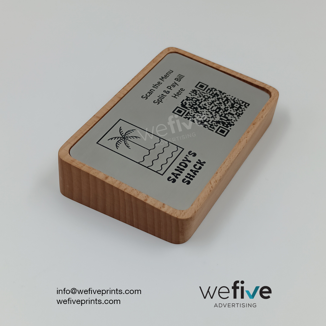 Upgrade your service with Custom QR Code Menu Holders UAE from We Five Advertising. Designed for style and durability, these holders offer a sleek, contactless solution for displaying digital menus in restaurants, cafes, and hotels. Boost hygiene, branding, and customer interaction effortlessly.